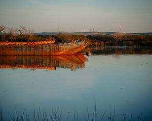 An old barge floats in the Sacramento-San Joaquin Delta near Rio Vista, California on February 19, 2023. Photographer: Kori Suzuki